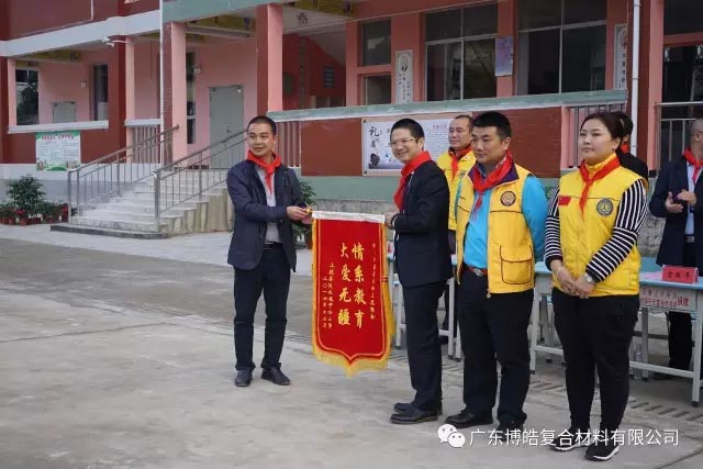 捐贈儀式上,廣東江西上猶商會會長、廣東博皓復合材料有限公司董事長賴厚平先生向陡水中心小學、平富中心校和營前鎮石溪小學等學校贈送了課桌、學習用品、電腦設備等教育教學物資及助學金,在講話中,賴厚平先生勉勵同學們勤奮學習、自強不息,把暫時的艱苦作為成長生活中的磨煉和精神財富的積累,把感激之情化為成才之志,發奮之源,用優異的成績回報社會。